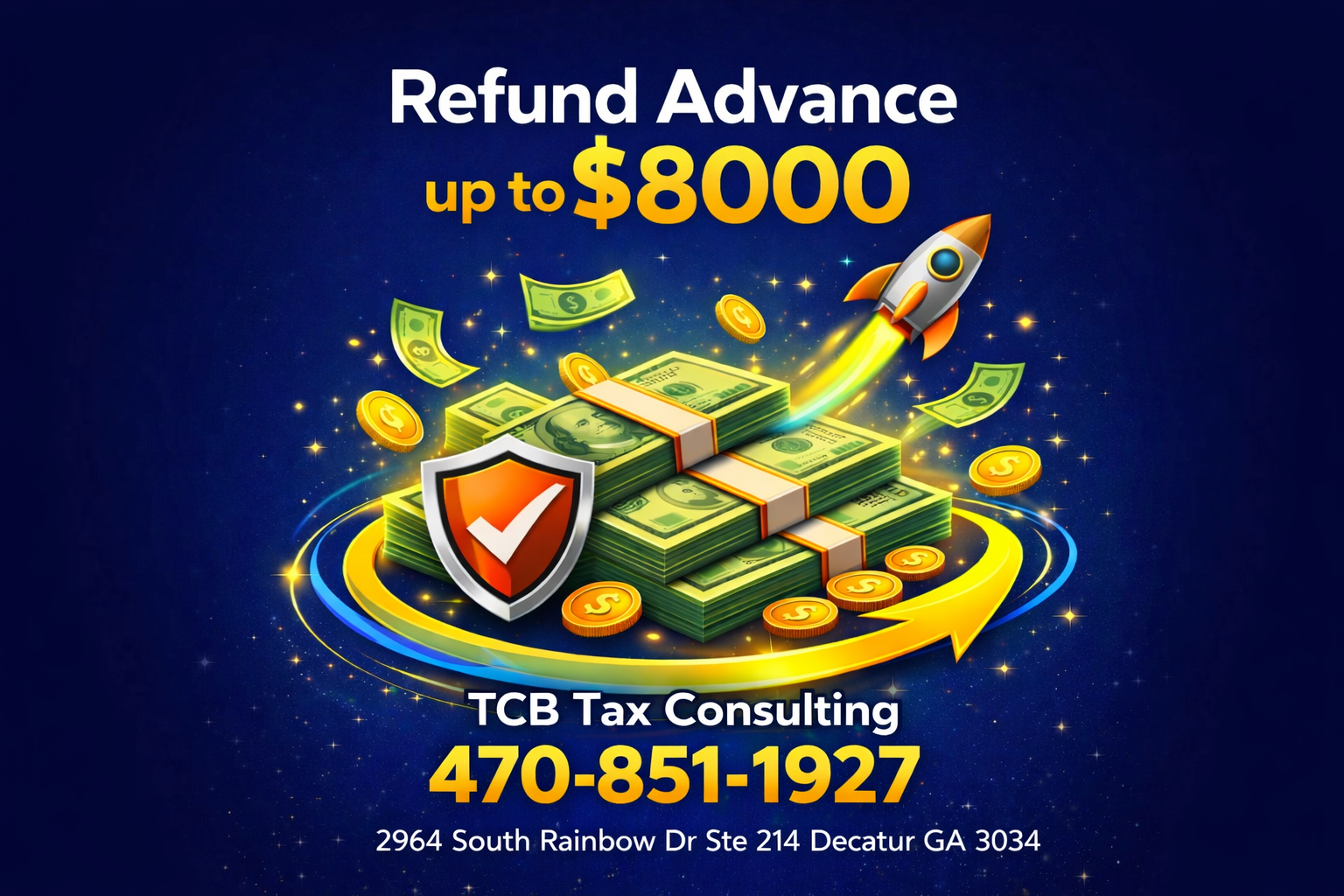 Welcome to TCB Tax Consulting, your trusted partner for personal, professional, and precise tax solutions. We're committed to providing top-notch service with no upfront fees, refund advance options for those who qualify, audit support, debt resolution, and credit repair. Let us take care of your business!